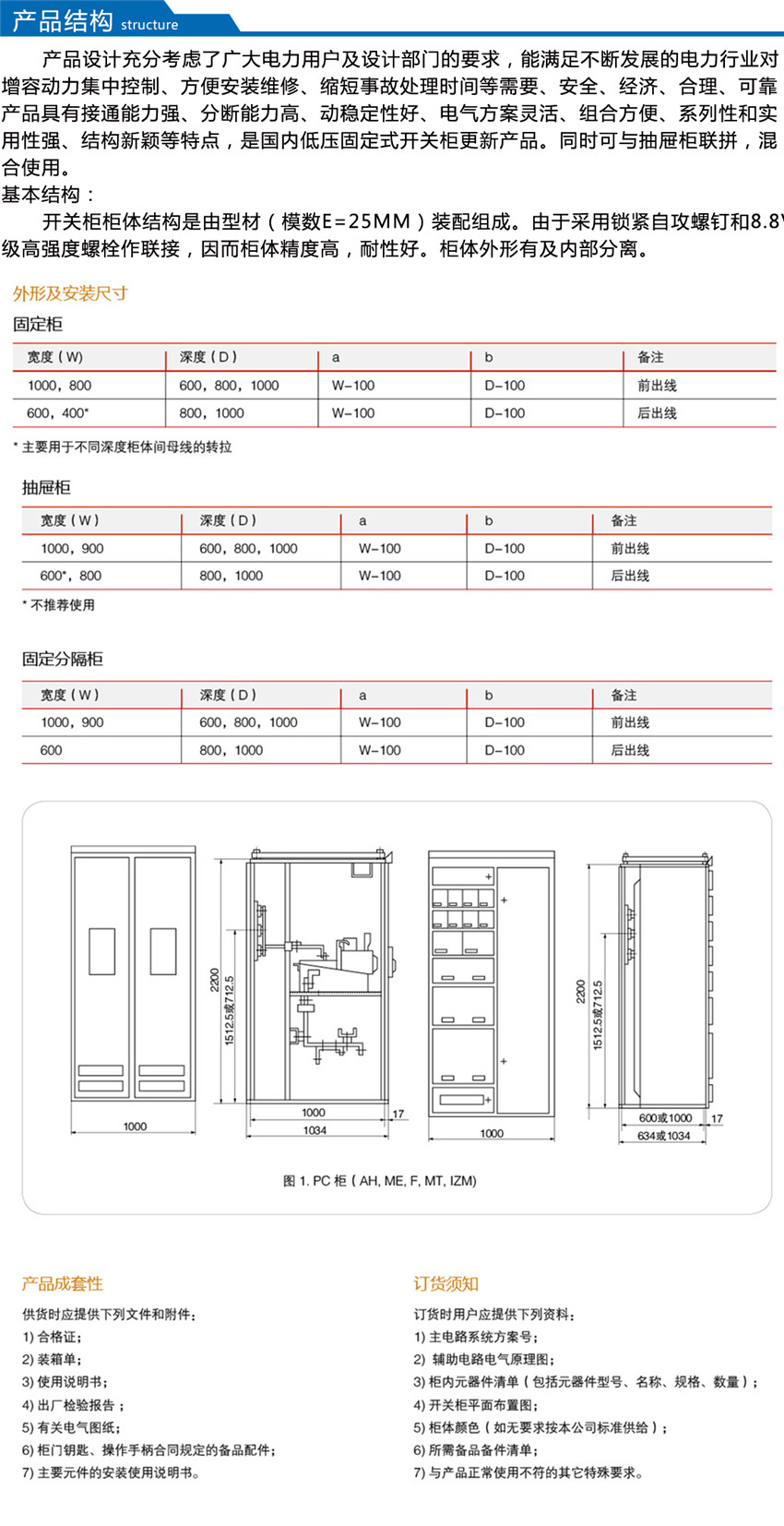 本裝置的基本柜架為組合裝配式結(jié)構(gòu),柜架的全部結(jié)構(gòu)件都經(jīng)過鍍鋅處理,通過自攻鎖緊螺釘或8.8級(jí)六角螺釘緊固互相連接成基本柜架,再按方案變化需要,加上相應(yīng)的門、封板、隔板、安裝支架以及母線、功能單元等零部件,組裝成一臺(tái)完整的裝置,裝置內(nèi)零部件尺寸、隔室尺寸實(shí)行模數(shù)化(模數(shù)單位E=25mm)。