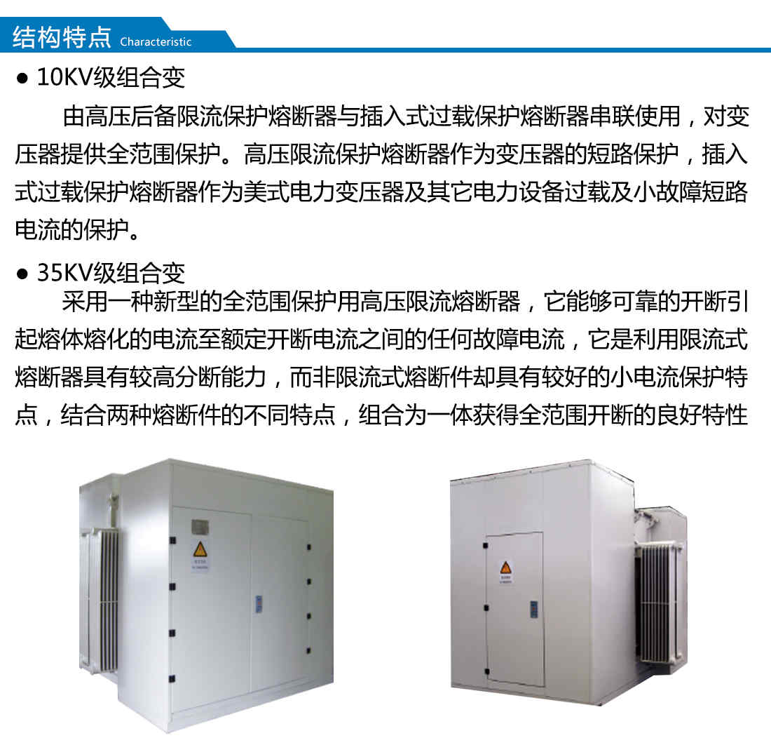 本產(chǎn)品是將變壓器,負荷開關,高壓熔斷器安裝在變壓器的箱體內,利用變壓器的絕緣液體作為整個產(chǎn)品的絕緣和散熱介質,采用全密封結構,外殼采用分體,噴丸、酸洗、磷化、分別噴涂底漆、中間漆、面漆達到表面的防腐性、耐厚性、防紫外線性均超過普通噴涂的強度,具有體積小,重量輕、安裝方便等優(yōu)點。