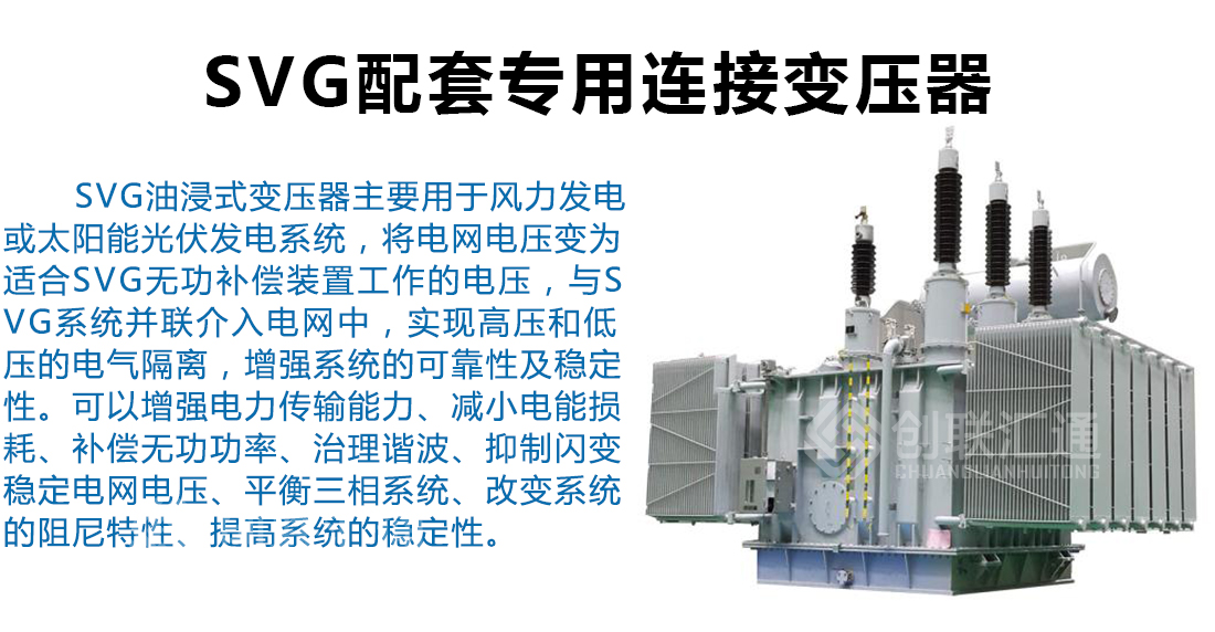 SVG配套專用連接變壓器主要用于風力發(fā)電或太陽能光伏發(fā)電系統(tǒng)。