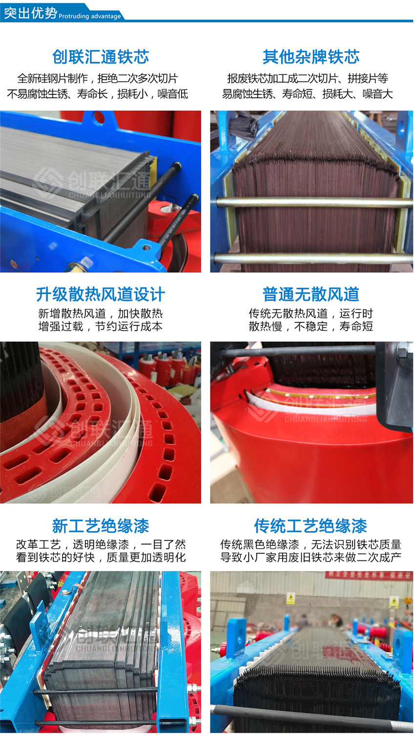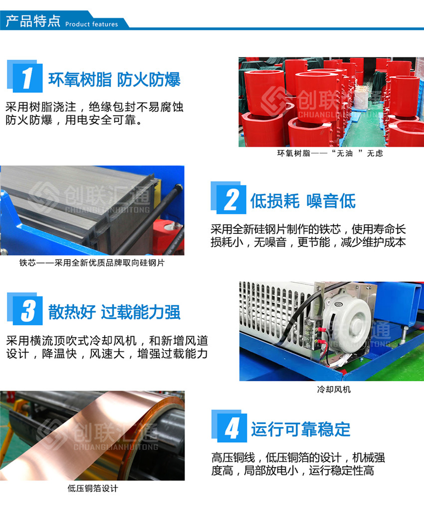 雙分裂環(huán)氧樹(shù)脂澆注干式變壓器的設(shè)計(jì)符合實(shí)際應(yīng)用并具有以下技術(shù)特性: